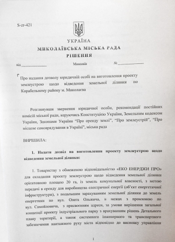 «Оппоблок» протянул на сессию выделение 20 гектаров под солнечную электростанцию недавно созданной фирме в Николаеве