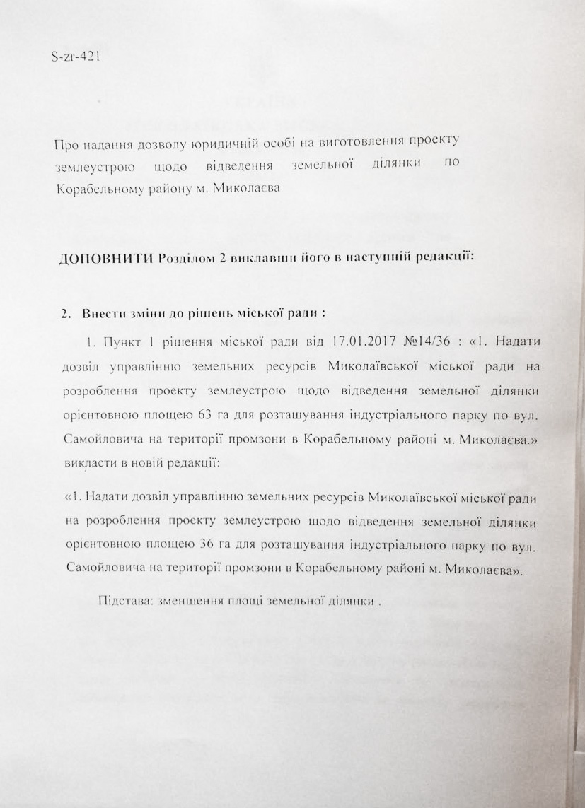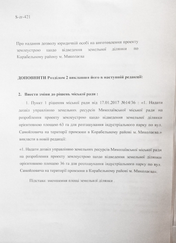 — Прежде чем ставить на голосование, нужно все-таки посмотреть, что нам раздали на руки. Файл szr-421, это тот файл, о котором говорит Солтыс. Совершенно согласна с ним, и не понимаю, в чем срочность коммерческог вынеесения вопроса на сессию. При этом, я не буду сейчас рассказывать про аукционный порядок, предоставление преимущества другому лицу права и так далее, которые связаны с коррупционной деятельностью. Я не боюсь этих слов. Но у нас на руках еще один файл, и, чудо. В одном случае мы даем разрешение на подготовку проекта землеустройства ТОВ-ке какой-то, не знаю, может, она и суперклассная в Украине, во втором случае, мы даем это же разрешение, но уже управлению земельных ресурсов. Причем разница в площадях тоже значительная. Там 63 гектара, а там 20. Но только разница в том, что там мы даем своему управлению, и оно делает индустриальный парк, по которому теперь у меня стало еще больше вопросов. Если таким образом у нас в городе начинают реализовываться механизмы безаукционнй раздачи земель, и это называется громким словом «Создание рабочих мест», то здесь я согласна с Танасовым. Прежде чем выносить вопрос в зал с голоса, я хотела бы обоснование, в чем же такое недержание? Солнце перестанет обогревать землю? Рабочие места прекратятся, если сегодня мы не вынесем эти два вопроса на сессию? - сказала Елена Киселева.