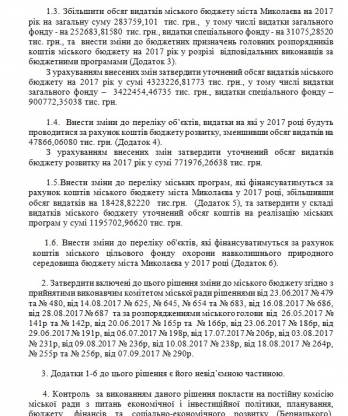 Другой пункт подразумевает субвенцию из городского бюджета областному бюджету для оказания поддержки областному коммунальному предприятию «Николаевоблтеплоэнерго» на сумму 10 миллионов гривен.