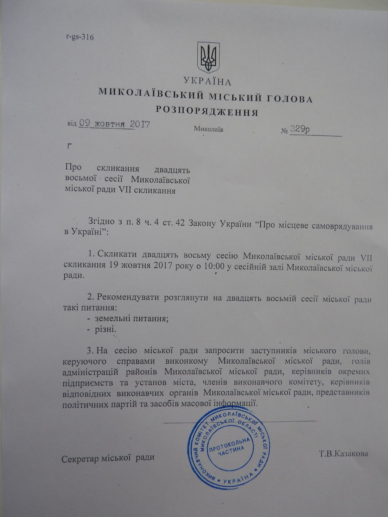 Сразу после решения сессии секретарь горсовета Татьяна Казакова, исполняющая обязанности мэра Николаева, подписала распоряжение о созыве на 19 октября очередной «земельной» сессии Николаевского городского совета.