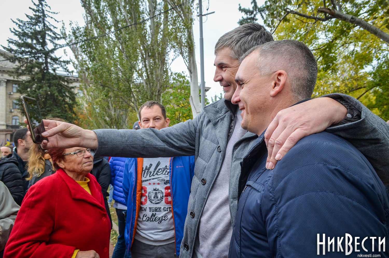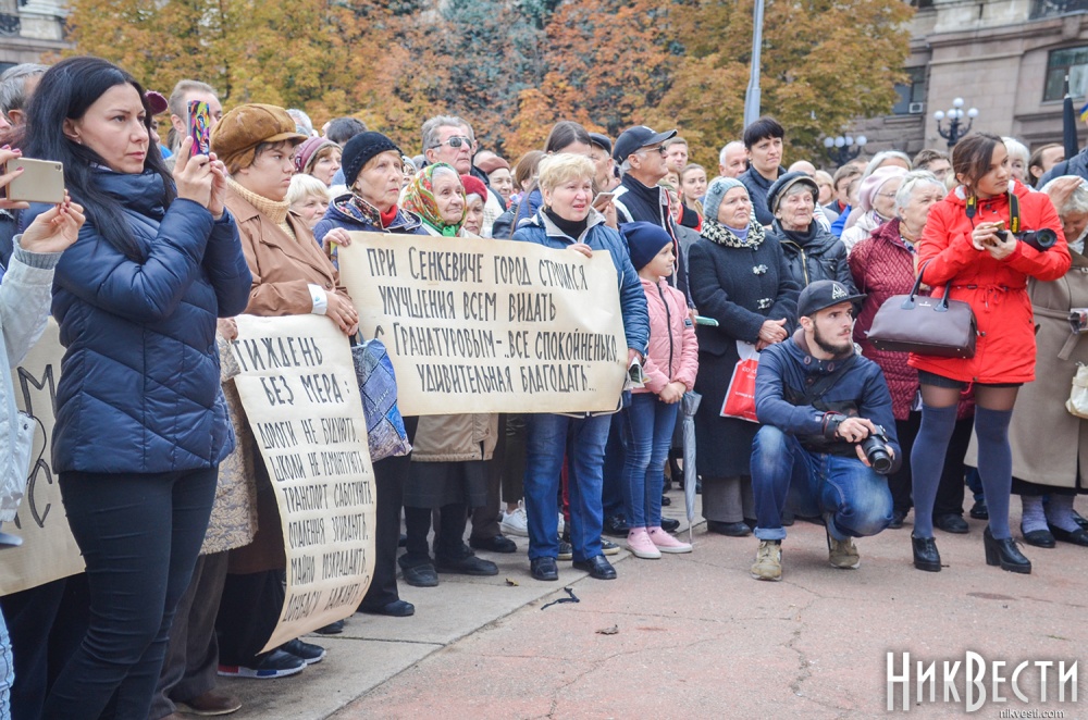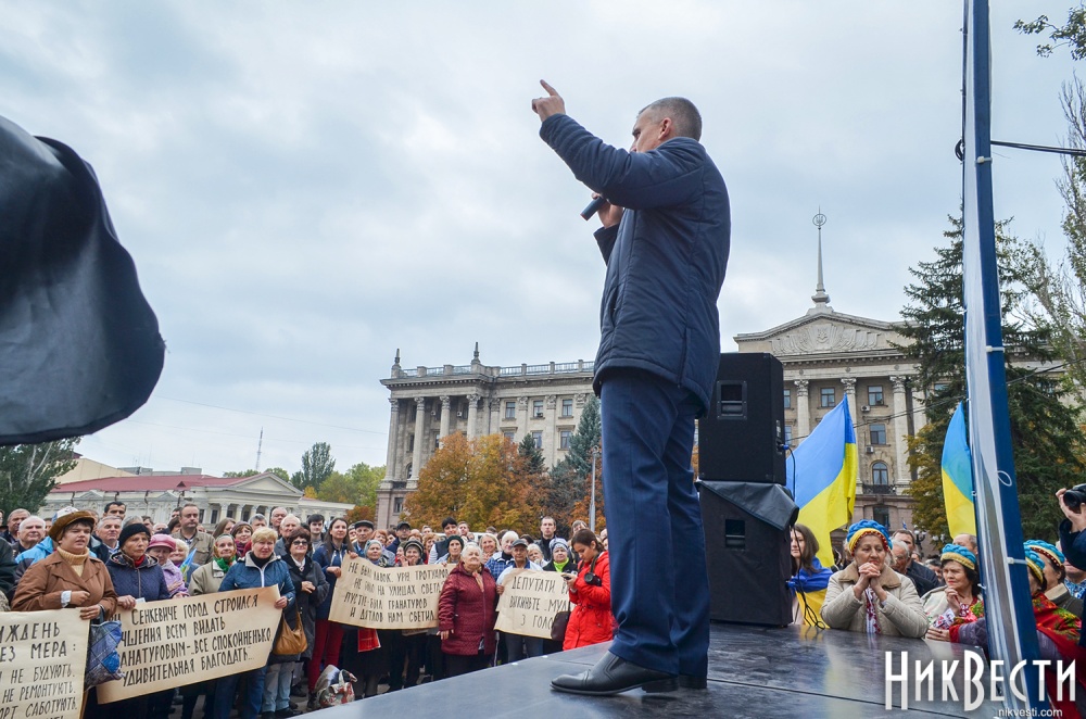 Единственным нардепом, присутствовавшим на акции, был представитель «Блока Петра Порошенко «Солидарность» Александр Жолобецкий. Также на митинге были замечены депутаты городского совета, чиновники и руководители коммунальных предприятий. В ходе акции Александр Сенкевич заявил о том, что сегодня они все собрались для того, чтобы собрать все подписные листы за отставку Николаевского городского совета.