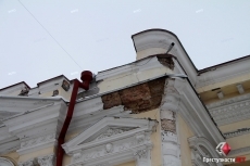 Отметим, что еще два года назад началось обрушения фасада здания Николаевского академического художественного русского драматического театра, который был отреставрирован 15 лет назад. Обрушился угол здания со стороны улицы Лягина, также частично осыпается фасад и в других местах. До сегодняшнего дня фасад здания огражден забором.