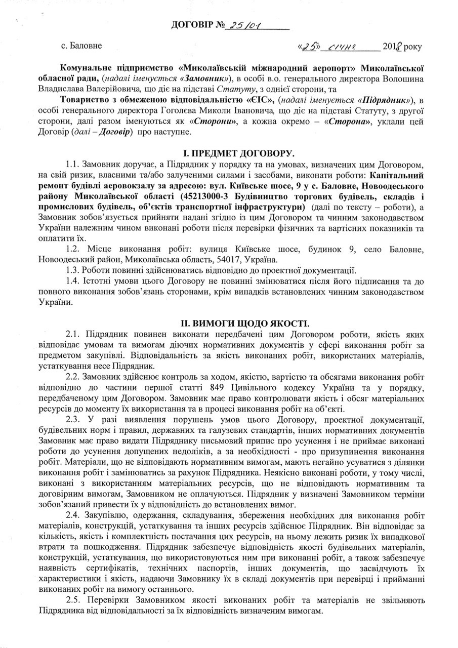 Договор на 102 миллиона 232 тысячи 919 гривен с киевской компанией подписал исполняющий обязанности директора аэропорта «Николаев» Владислав Волошин. Срок действия договора - до 25 декабря 2018 года.