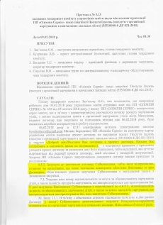 Об этом свидетельствует протокол заседания тендерного комитета управления образования от 9 февраля относительно отклонения предложения ЧП «Олімпія Сервіс» относительно закупки по услугам столовых.