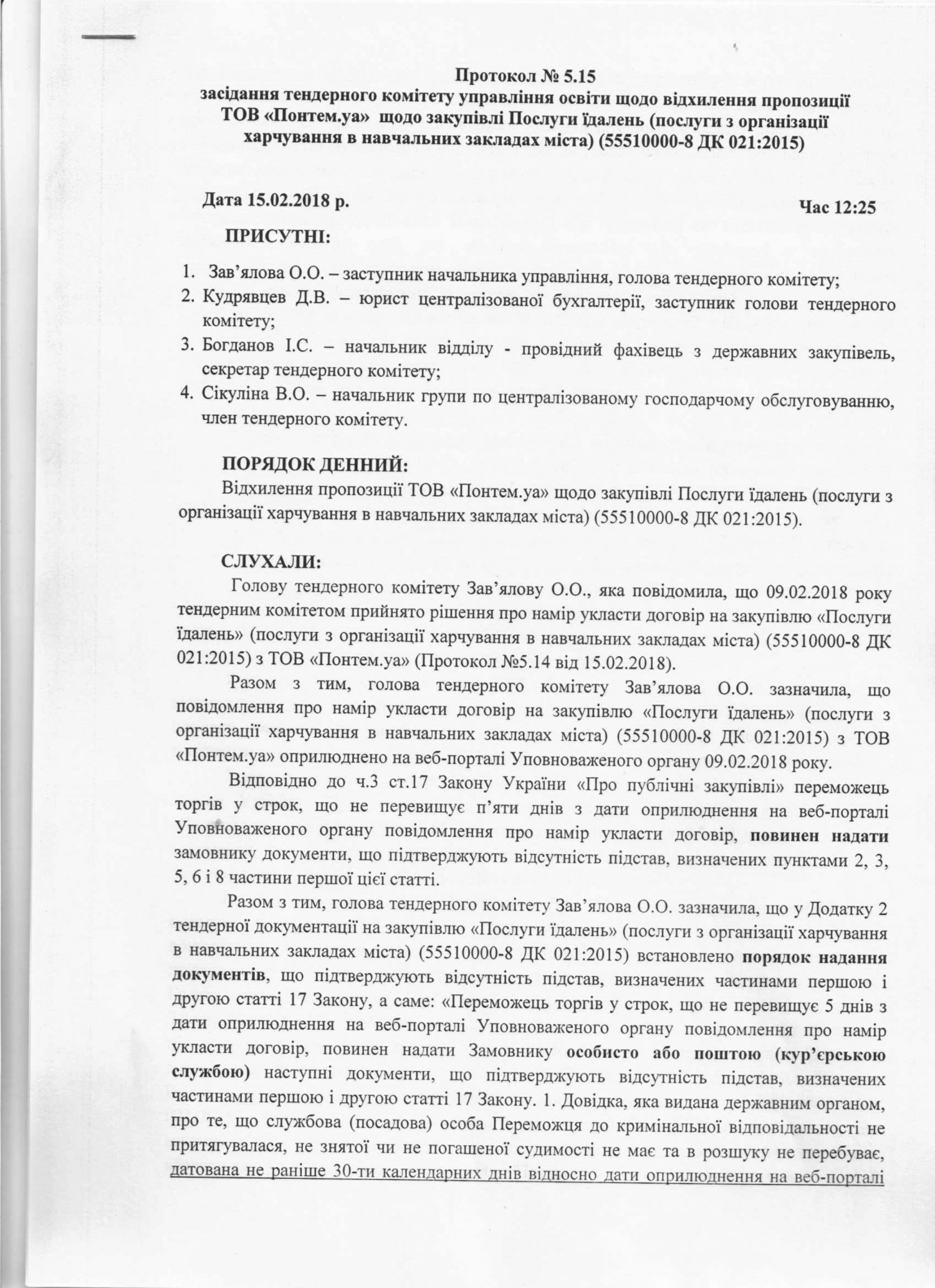 Однако, как следует из протокола №5.15 заседания тендерного комитета управления образования Николаевского городского совета, компания «Понтем.уа» не предоставила гороно необходимые документы, в результате чего тендерный комитет 15 февраля отклонил предложение фирмы.