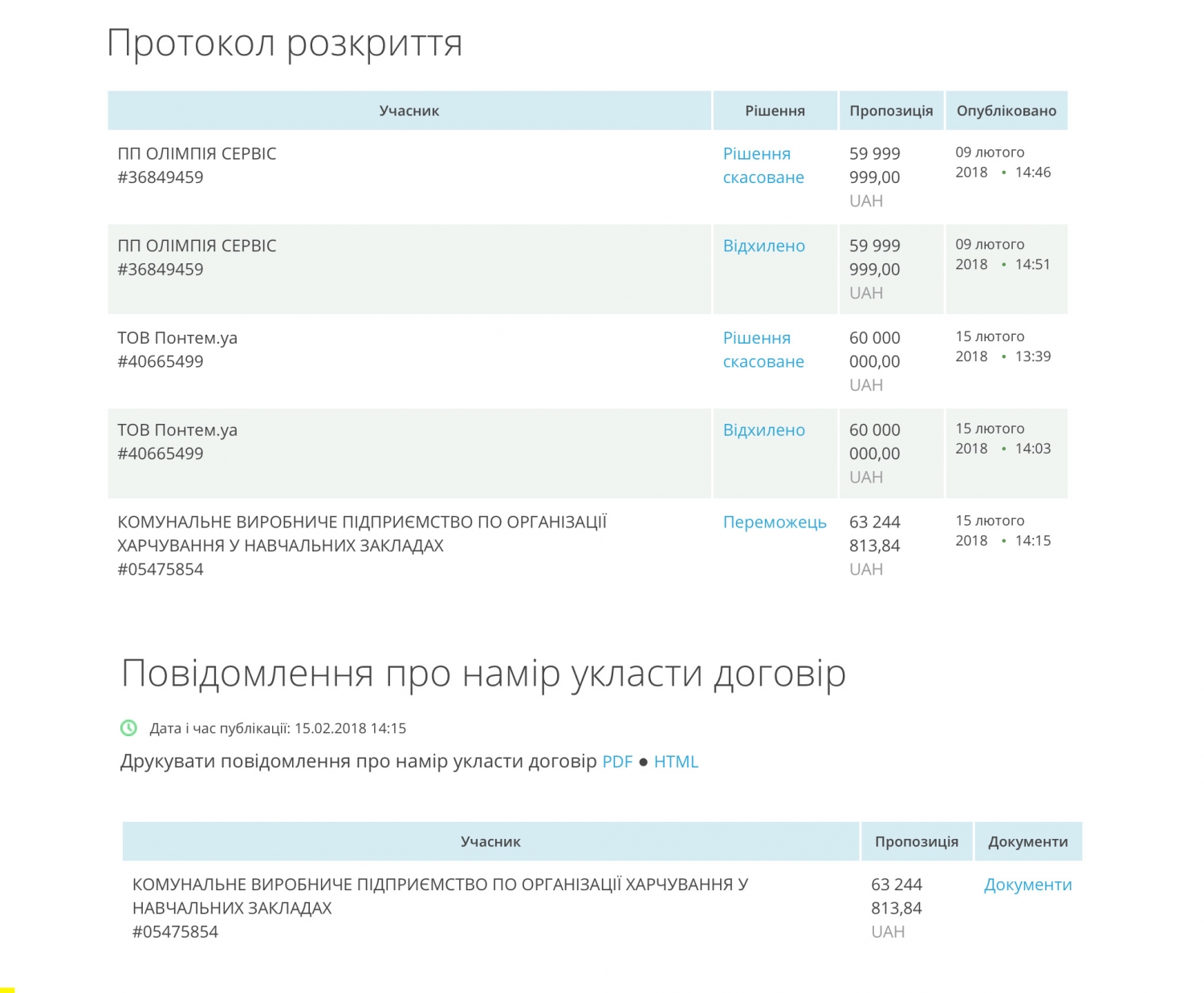 В итоге, тендерный комитет объявил о намерении заключить с коммунальным предприятием по организации питания в учебных заведениях договор на услуги по организации питания в школах и детсадах Николаева в 2018 году на сумму 63 миллиона 244 тысячи 813 гривен.
