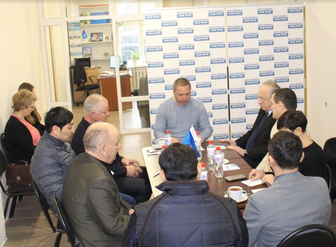 Ранее председатель Николаевской областной государственной администрации Алексей Савченко совместно с депутатом областного совета от партии «Наш край» Юрием Кормышкиным рассказали о создании в облсовете депутатской группы «Разом до перемоги», а также продемонстрировали вывешенный на недостроенном жилом комплексе «Адмирал» красно-черный флаг.