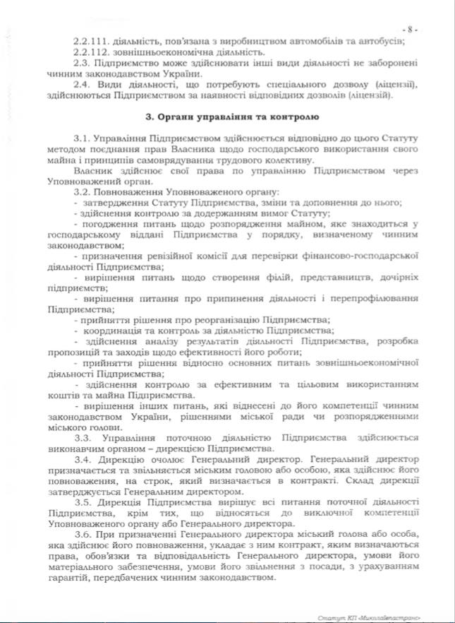 При этом разработчики Статута указали, что новое предприятие займется не только перевозкой пассажиров, а и непрофильной деятельностью.
