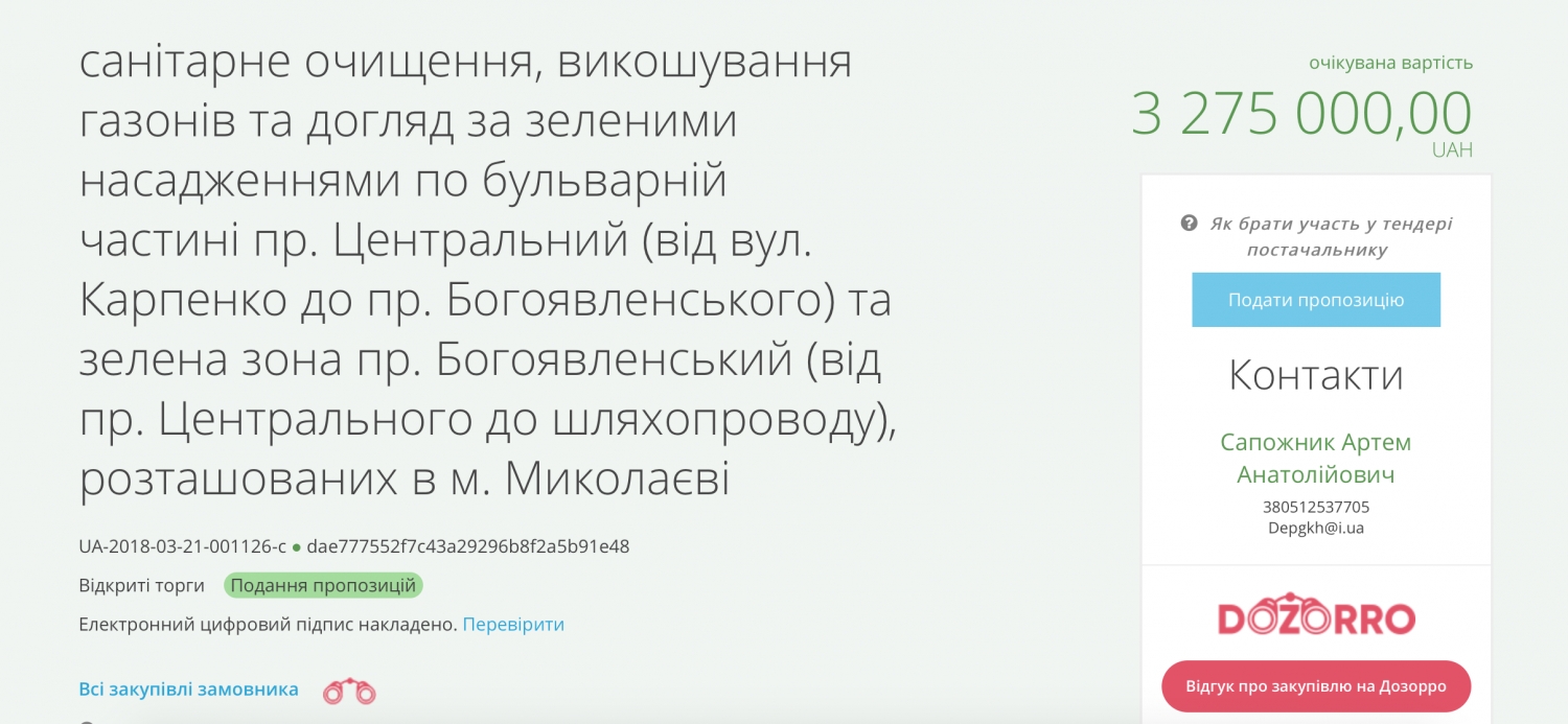 Департамент жилищно-коммунального хозяйства Николаевского городского совета объявил тендер на уход за зелёными насаждениями и газонами двух проспектов.