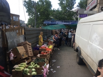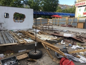 Под навесом на 3-й Слободской образовался стихийный рынок, а вице-мэр Андриенко обещал все разнести кувалдой