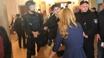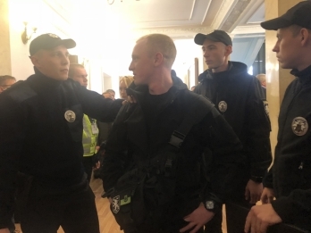 Во время сессии несколько националистов, представителей Социал-национальной ассамблеи зашли в сессионный зал и хотели облить стаканом с экскрементами депутата от фракции «Наш край» Владислава Ентина. Это заметила глава фракции «Блок Петра Порошенко «Солидарность» Елена Киселева, которая схватила националиста за руку. В результате фекалии попали и на нее, облив ее платье.