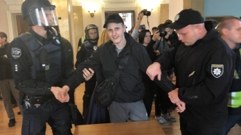 После этого депутат этого националиста начала выводить из сессионного зала. Началась потасовка, вследствие которой Владислав Ентин достал пистолет и предупредил, что у него есть разрешение на оружие и в следующий раз он будет защищать себя им.