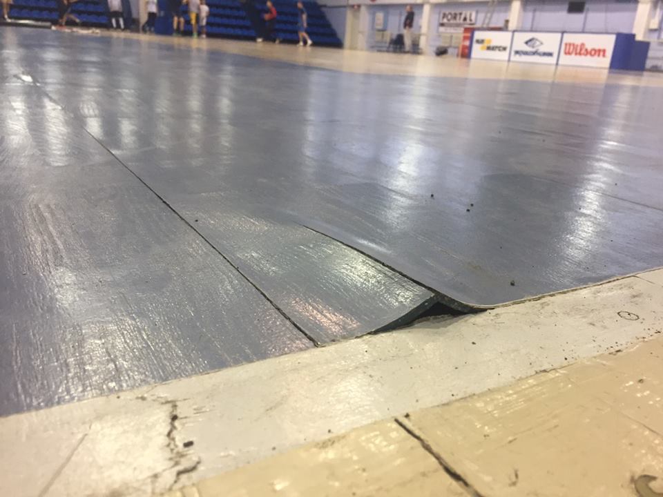 После того, как в Николаеве утром 24 октября спортшколу «Надежда» затопило дождем из-за открытой на время ремонта крыши, паркет главной баскетбольной арены города дал первые трещины.