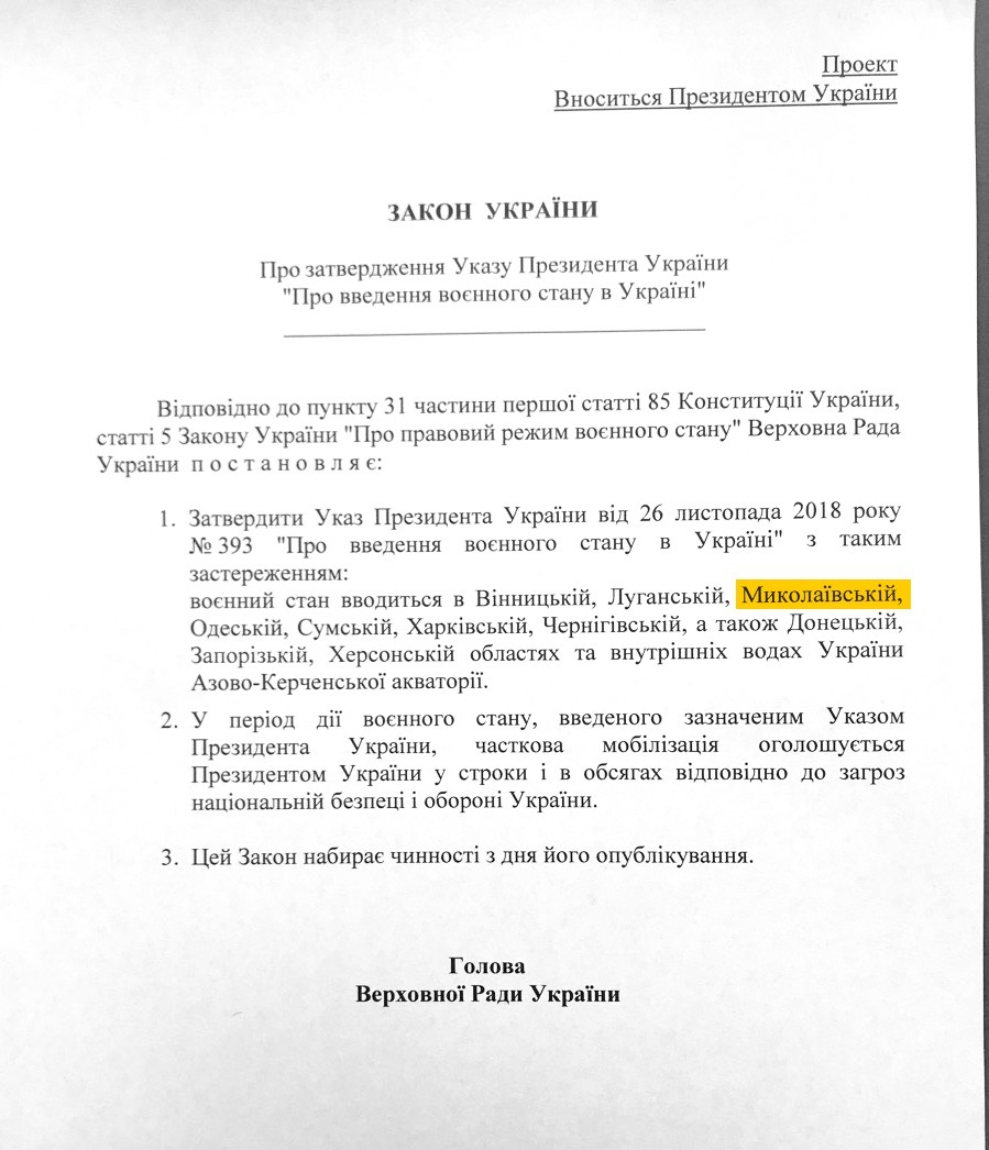Верховная Рада Украины проголосовала за введение военного положения в нескольких регионах Украины, в частности, в Николаевской области.