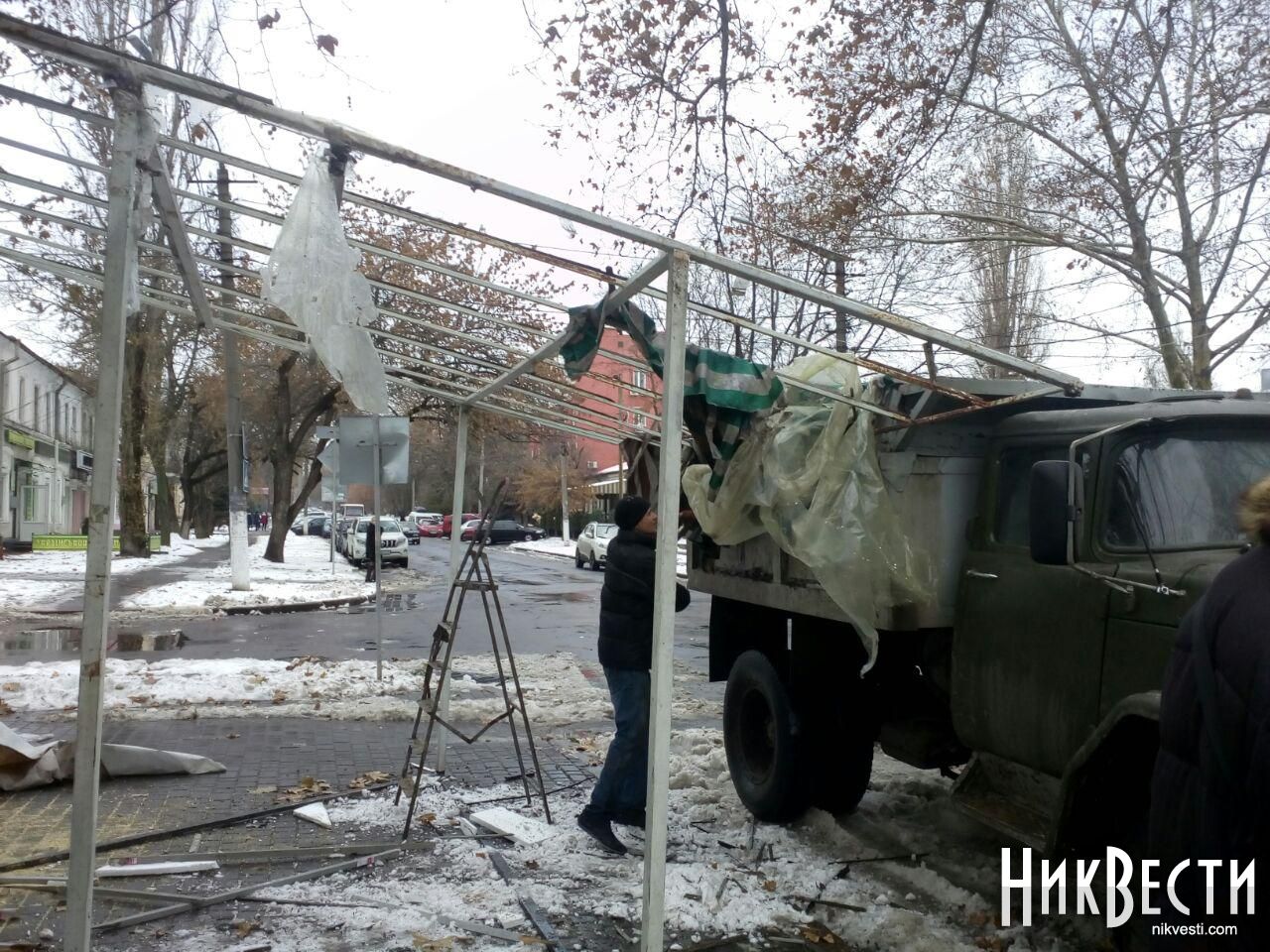 Сегодня, 4 декабря, в Николаеве сносят навесы на цветочном рынке, построенном на тротуаре вдоль улицы Спасская, между Соборной и Лягина. На их месте обещают построить павильон, а также положить новую плитку.