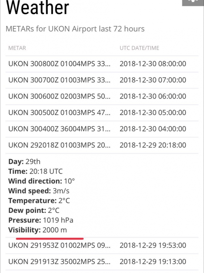 По его словам, видимость во время посадки самолета в Николаеве была 2 тысячи метров.