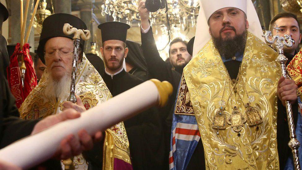 Вселенский патриарх Варфоломей передал предстоятелю новосозданной Православной церкви Украины Епифанию посох и томос, который провозглашает автокефалию. Теперь процедура получения Украиной церковной независимости официально завершена.