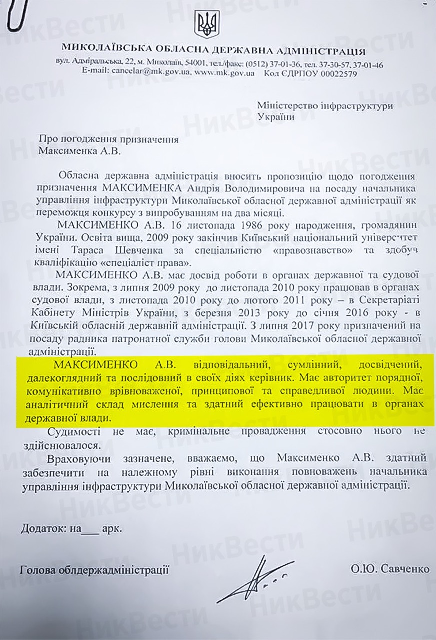 Напомним, свою карьеру в Николаевской области Андрей Максименко начал с должности советника губернатора.