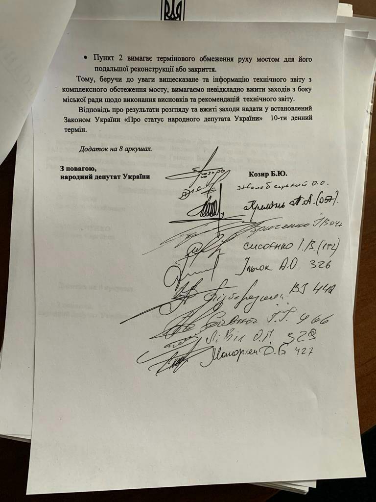 Народный депутат Украины Борис Козырь вместе с коллегами по парламенту, представляющими Николаевщину, потребовали срочно ограничить движение транспорта по Южнобугскому (Варваровскому) мосту.