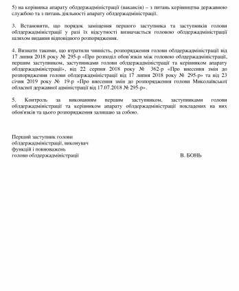 Заместитель главы Николаевской облгосадминистрации Евгений Шевченко, которого лишили всех полномочий в социально-гуманитарной сфере, заявил, что первый вице-губернатор Вячеслав Бонь «играет в политические игры и не отвечает за слова», а также заявил, что не согласен с тем, что он провалил свою работу.