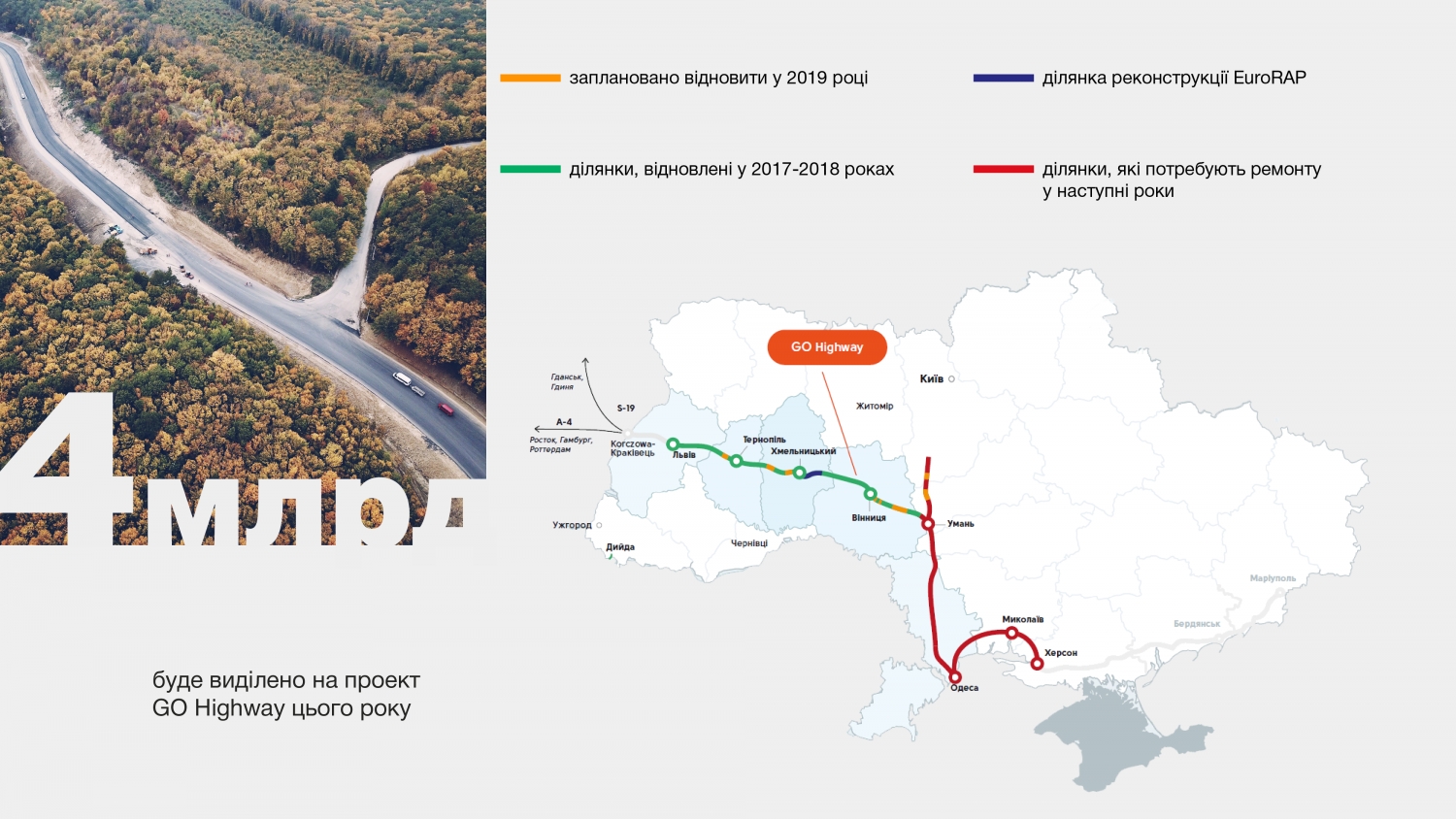Основными проектами для Укравтодора будут ремонт трассы «Николаев - Кропивницкий» и трассы «Запорожье - Мариуполь», реализация первого проекта по автоматическому взвешивании авто при движении на подъездах к Киеву Weight-in-motion и другое.