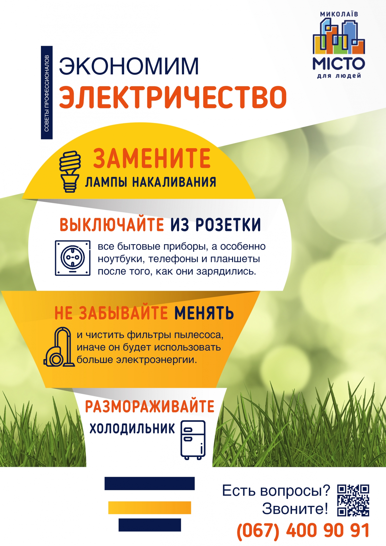 В управляющей компании «Місто для людей — Миколаїв» дали советы по уменьшению потребления электроэнергии.