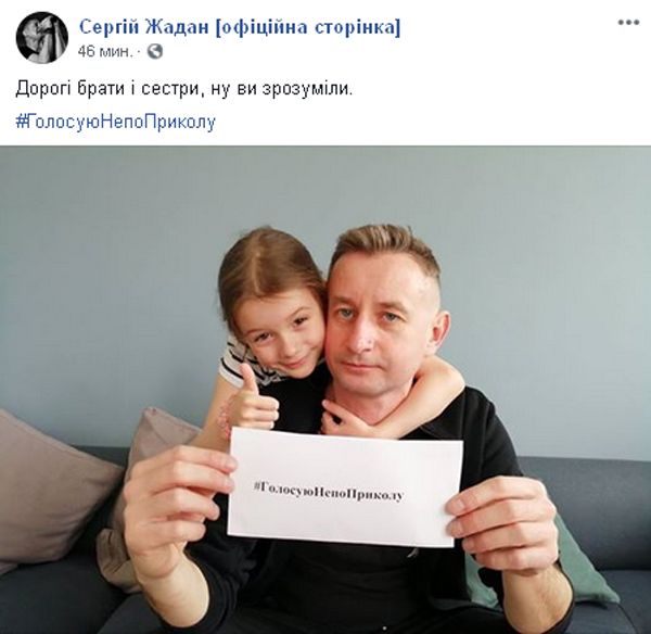 Призыв певца уже поддержали известный писатель Сергей Жадан и солист группы «Бумбокс» Андрей Хлывнюк. Последний обратился к согражданам из студии, а второй опубликовал фото со слоганом флешмоба.