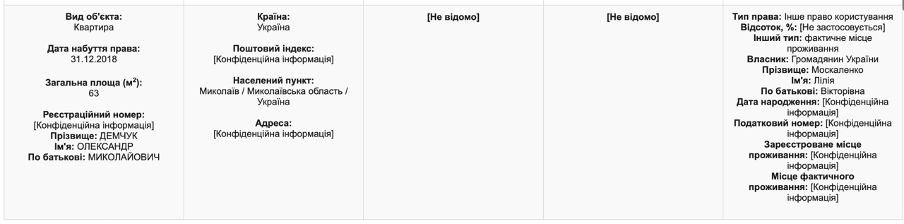 Руководитель аппарата Николаевской облгосадминистрации Александр Демчук в своей декларации указал, что живет в квартире, принадлежащей сестре главы областного совета Виктории Москаленко.