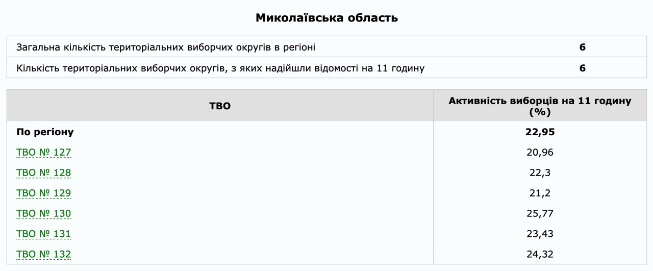 12:42 Явка избирателей на Николаевщине состоянием на 11:00 составила 22,95%. Данные опубликовала Центральная избирательная комиссия.