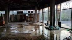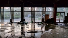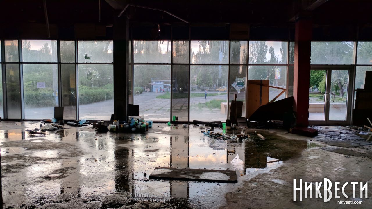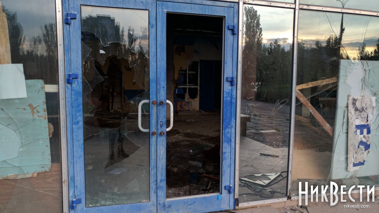 В результате бездействия руководства Николаевского облсовета неизвестные разграбили здание кинотеатра «Искра». Сегодня в здании разбиты стекла и выбиты входные двери, разрушено здание холла, кинозала и вспомогательных помещений.