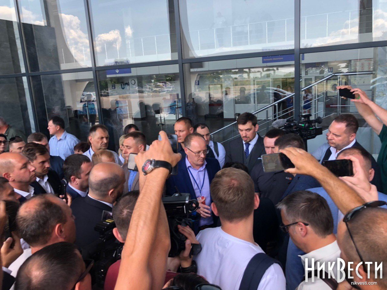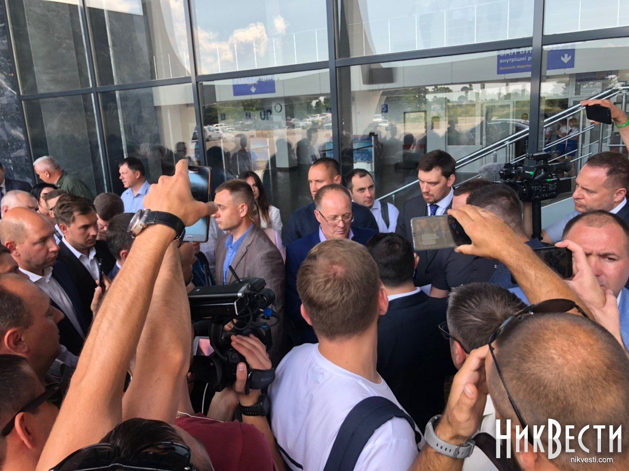 Также в аэровокзале присутствуют кандидаты в народные депутаты от партии «Слуга народа» по мажоритарным округам в Николаевской области Александр Пасечный, Игорь Копытин, Игорь Негулевский, Александр Гайду, Артем Черноморов и Максим Дырдин.
