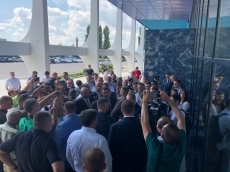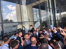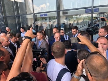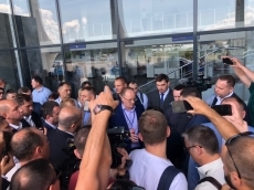 В аэропорту его встречает руководство Николаевской облгосадминистрации, глава облсовета Виктория Москаленко, правоохранители.
