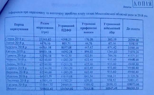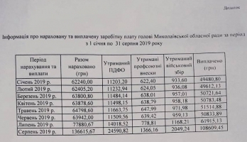 Отметим, что в Николаевском областном совете на аналогичный запрос корреспондента НикВести от 14 августа о заработной плате главы облсовета Виктории Москаленко и ее заместителя Андрея Кротова до сих пор не ответили. Ответ на информационный запрос журналиста отсрочили на 20 дней, сославшись на то, что программное обеспечение в финансовом отделе облсовета якобы не дает возможности оперативно показать, какой размер оклада, премий и надбавок, составляющих общий объем зарплаты, получает ежемесячно руководство Николаевского областного совета. Ответ на информационный запрос редакция НикВести до сих не получила.
