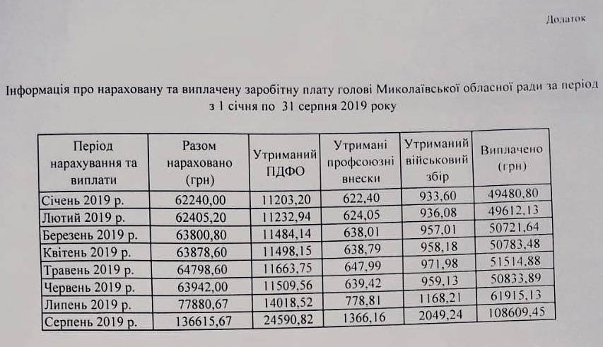 Отметим, что согласно документам, опубликованным Михаилом Соколовым, на его запрос от 27 августа, в облсовете сообщили, что в период с января по август этого года Виктория Москаленко получила на руки заработную плату на общую сумму почти 500 тысяч гривен. Ежемесячный размер зарплаты чиновницы, с учетом налогов и сборов, составляет от 50 до 60 тысяч гривен. При этом, в августе Виктории Москаленко было выплачено 108 тысяч гривен зарплаты.