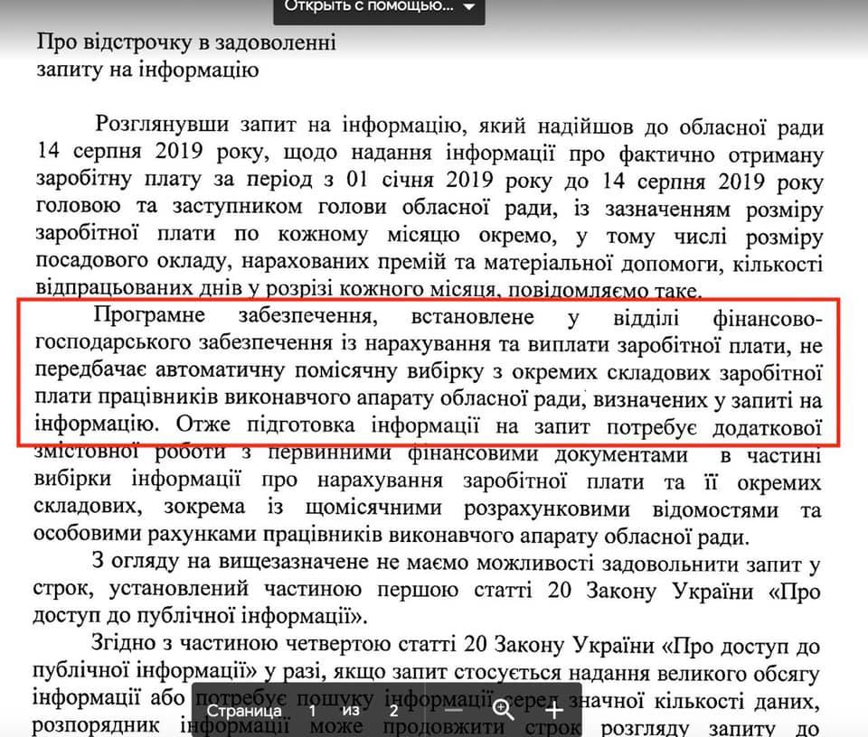 Об этом свидетельствует ответ на запрос депутата облсовета Михала Соколова, который тот опубликовал у себя в Facebook.