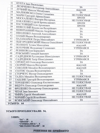 Однако результаты голосования не были продемонстрированы. Виктория Москаленко заявила, что произошел технический сбой и продолжила сессию.