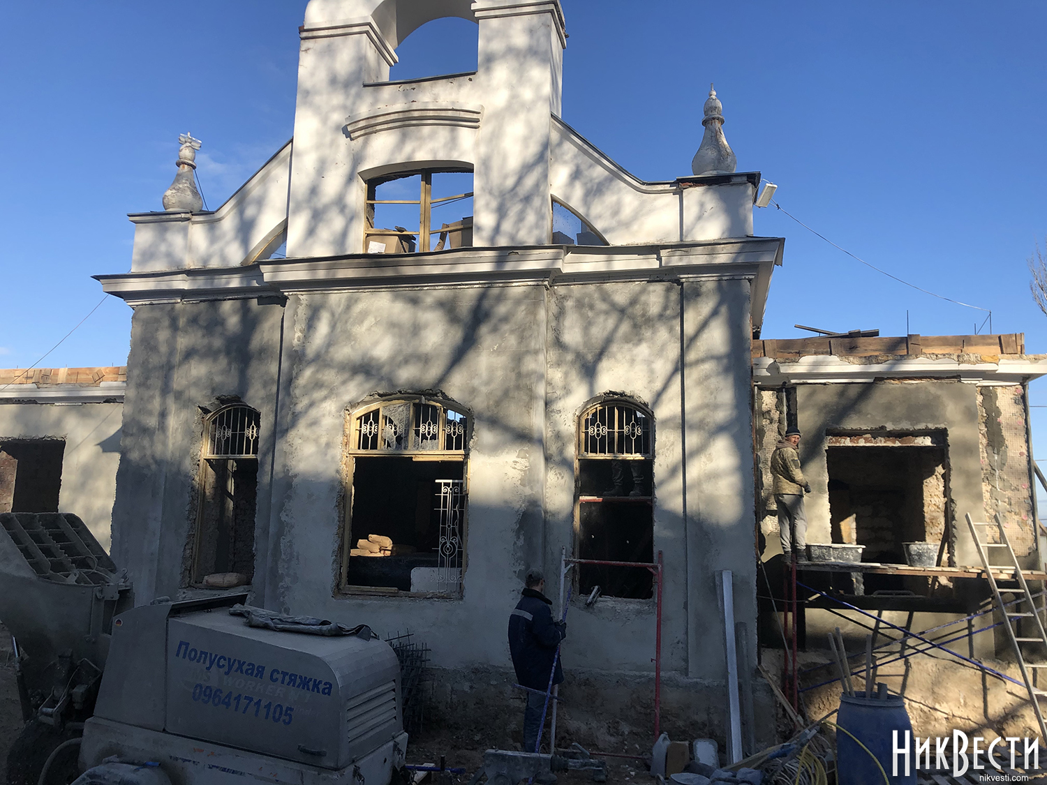 Корреспондент НикВести побывал на месте строительных работ. Состоянием на 6 декабря здание шахматного клуба представляет собой «коробку» без окон, дверей, потолка и крыши.