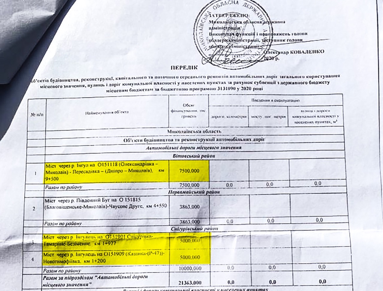 Заместитель главы Николаевской ОГА Александр Коваленко утвердил перечень объектов дорожного строительства на 2020 год, который предусматривает выделение 17,5 миллионов гривен на строительство мостов, проекты которых еще не изготовлены.