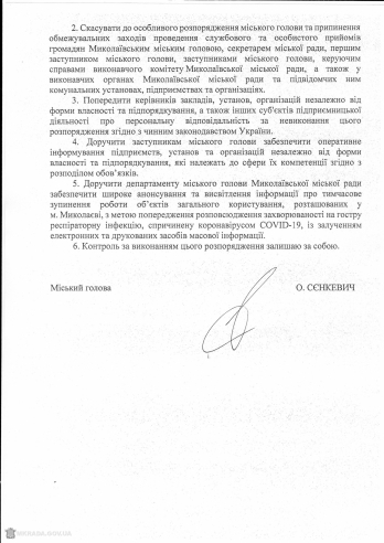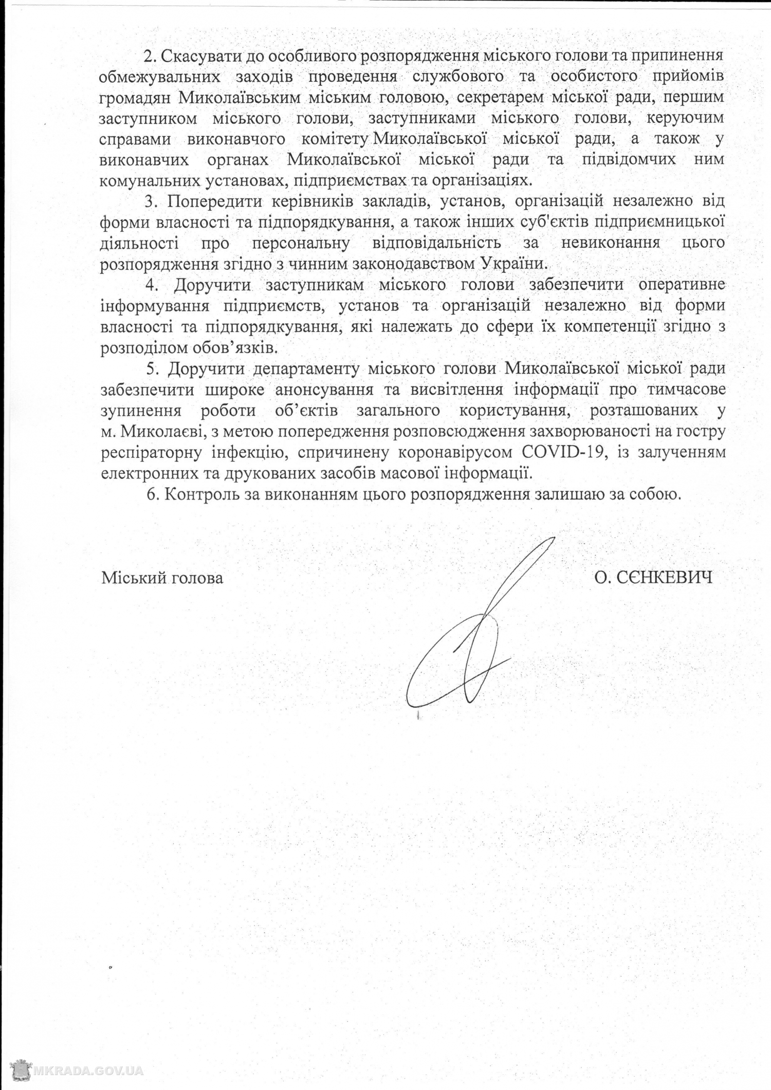 Соответствующее распоряжение сегодня, 16 марта, подписал мэр Николаева Александр Сенкевич.