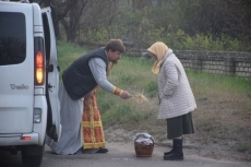 Настоятель храма в Матвеевке объехал микрорайон и освятил пасхальные корзины на дому
