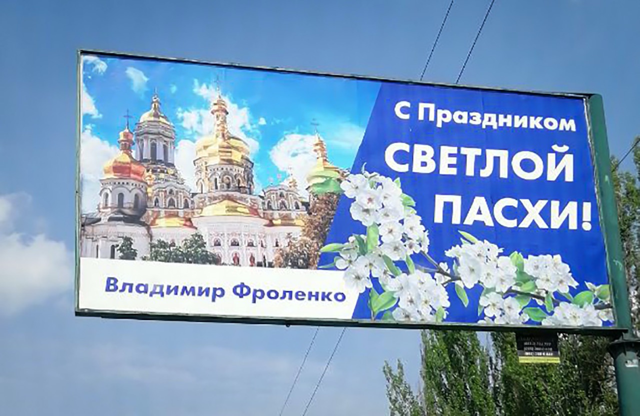Годом ранее, в апреле 2019 года, Владимир Фроленко сам «стеснялся» бренда политической партии «Оппозиционная платформа - За життя», когда развесил в Николаеве билборды с поздравлением с пасхальными праздниками. Тогда политик решил не упоминать свою принадлежность к политической силе, которую якобы представляет в Николаевской области.