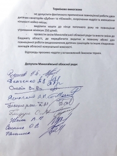Ранее сообщалось, что депутат Демченко считает, что Николаевский облсовет должен помочь детским санаториям, которые остались без финансирования.