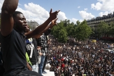 Демонстранты собрались на Площадь Республики в центре города, скандируя «Нет справедливости, нет мира!». Силовики заблокировали протестующих, когда они намеревались продолжить движение к Парижской опере.