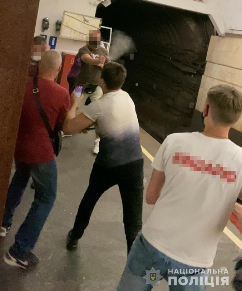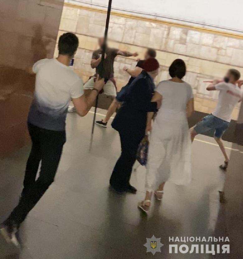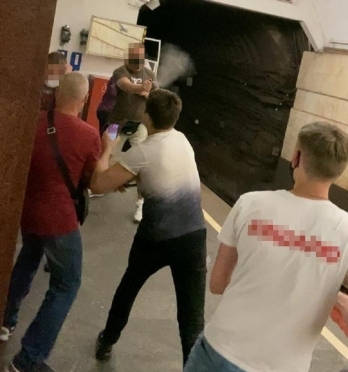 В киевском метрополитене, на станции «Театральная», произошла потасовка с участием националистов и сторонников Шария, которые проводили митинг у Офиса президента.