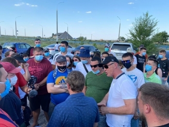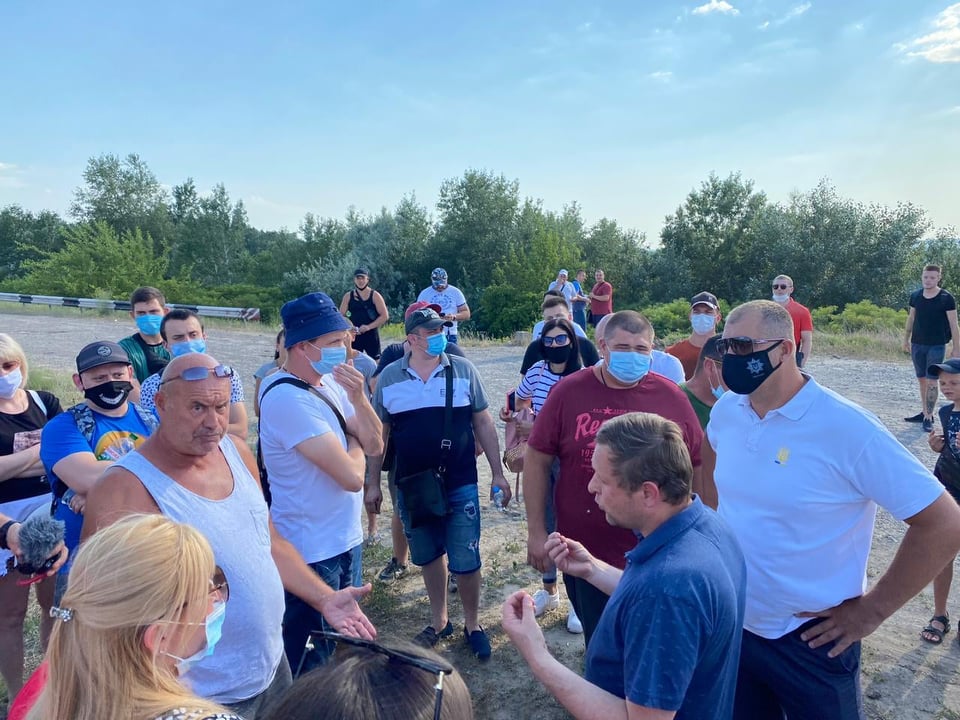 Как сообщает Херсонская мастерская новостей, с простестующими общался замгубернатор Херсонщины Дмитрий Бутрий.