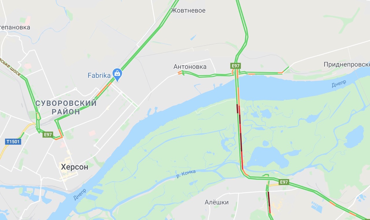 Отметим, что на данный момент на подъездах к мосту в сторону Херсона образовалась пробка протяженностью более 4 километров.