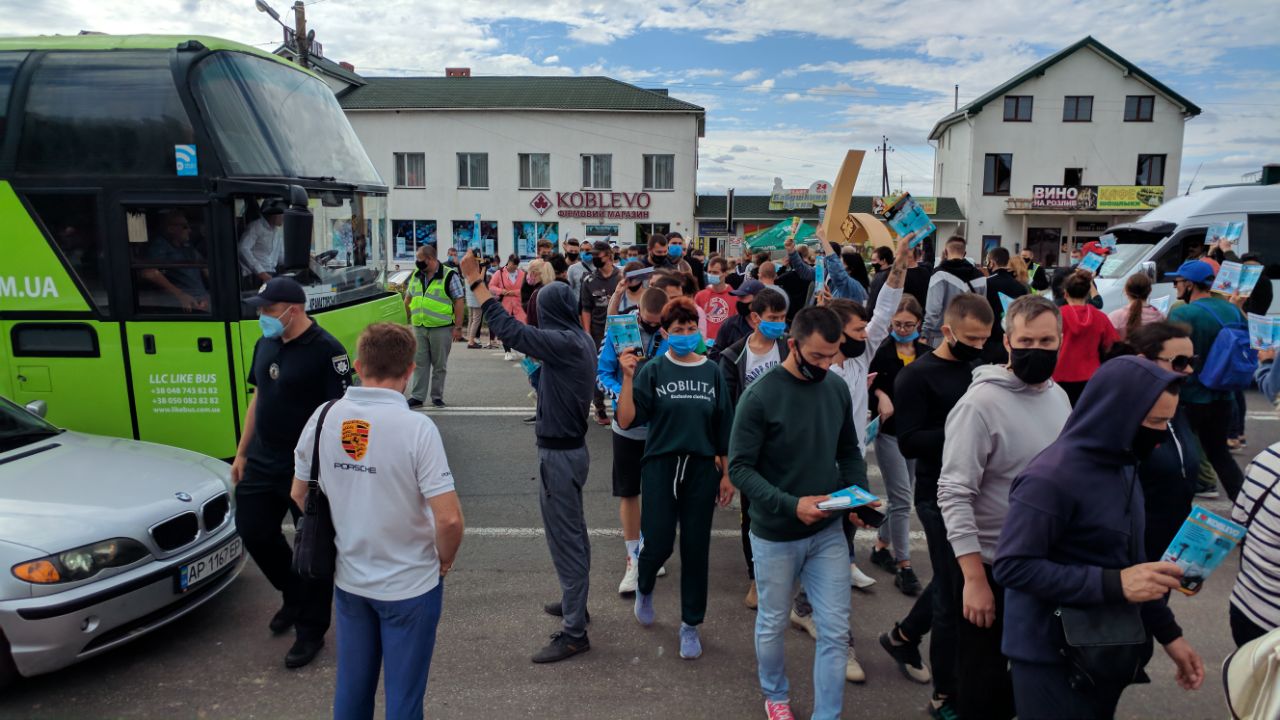 Акция началась в 15:00 возле автостанции Коблево. Митингующие беспрерывно ходят по дороге, препятствуя движению транспорта. Однако по просьбе полиции каждые 30 минут они пропускают часть машин, застрявших в пробке. К митингу также присоединись и водители «рикш».