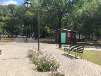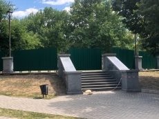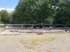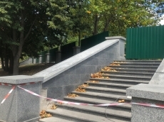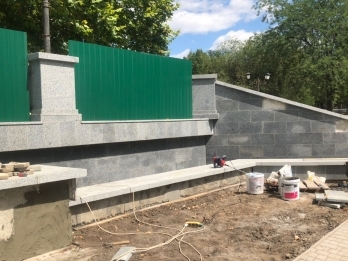 Территория, в центре сквера, где предусмотрен фонтан, ограждена строительным забором. Там уже начаты подготовительные работы, снято покрытие, которым была закрыта чаша будущего фонтана. Также работники приступили к обновлению плитки у входов в туалет, которая начала разрушаться.