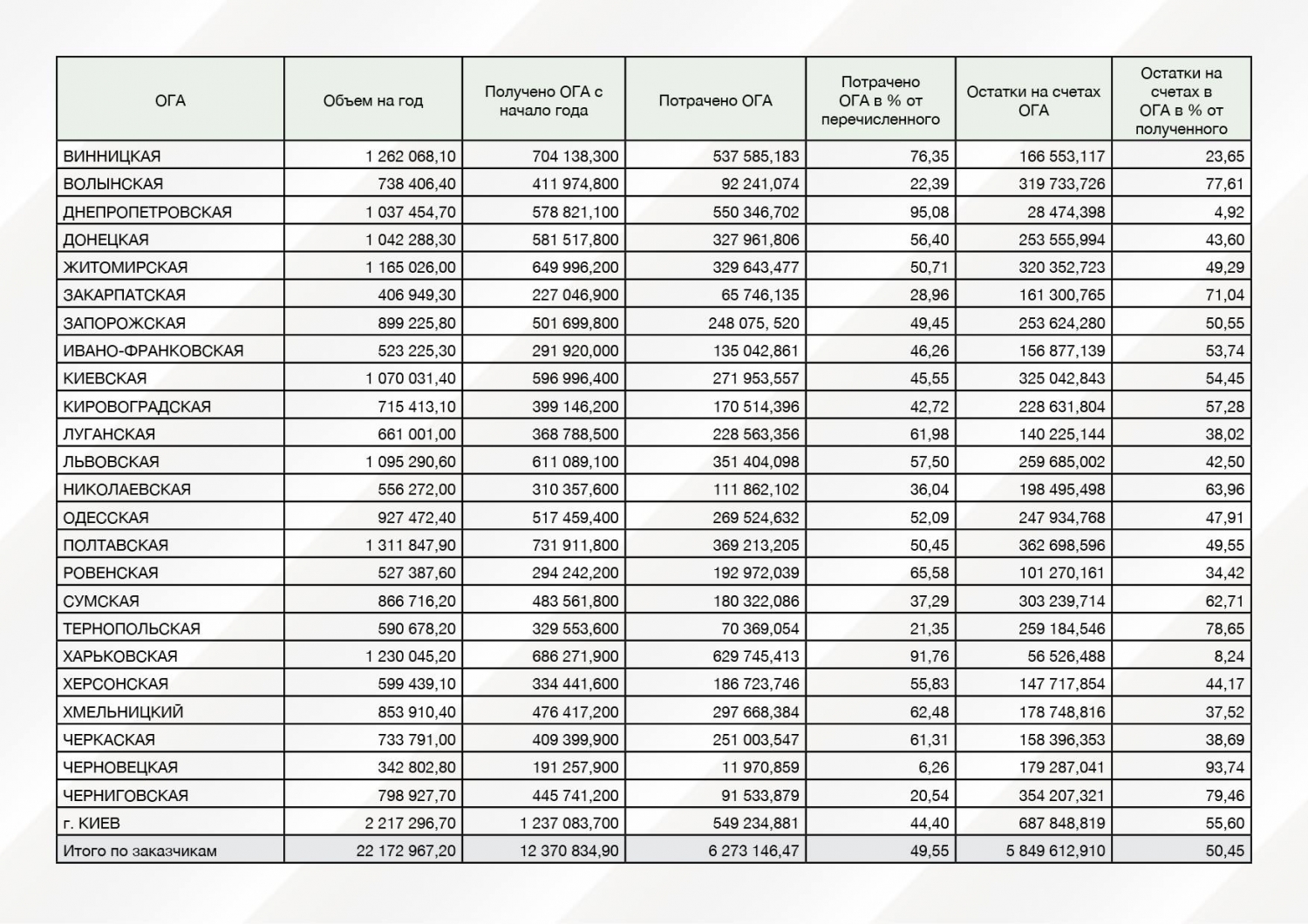 Таким образом, Николаевская ОГА освоила 36,04% выделенных средств, а остаток неосвоенных средств составил — 63,96%.