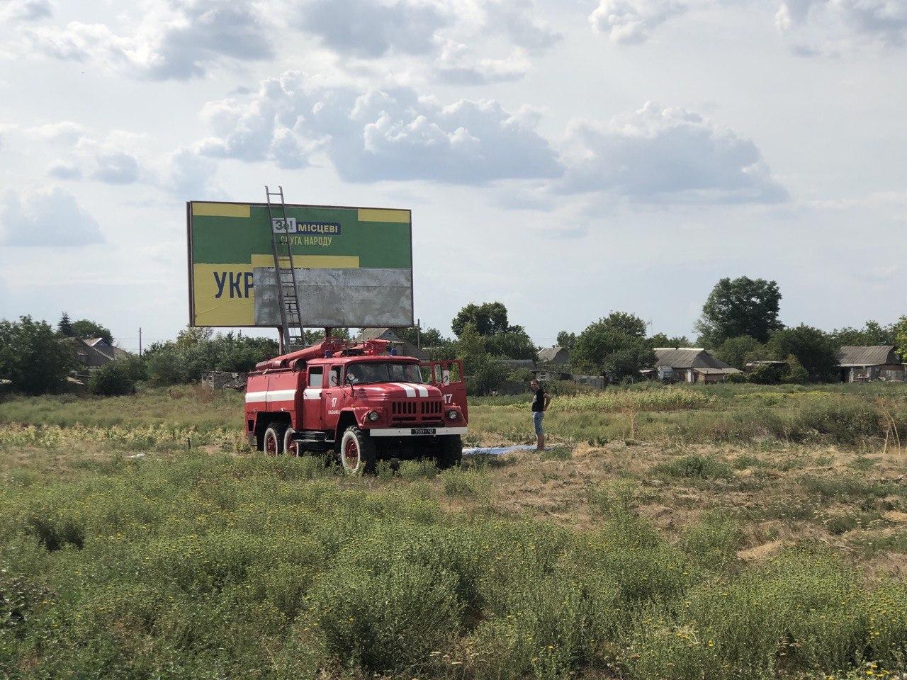 В Николаевской области борды «Слуги народа» клеили с помощью пожарной машины